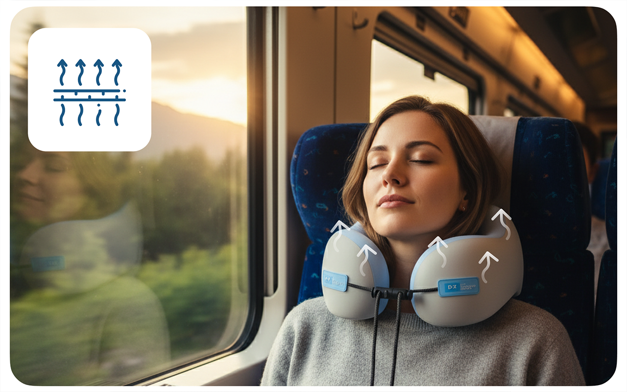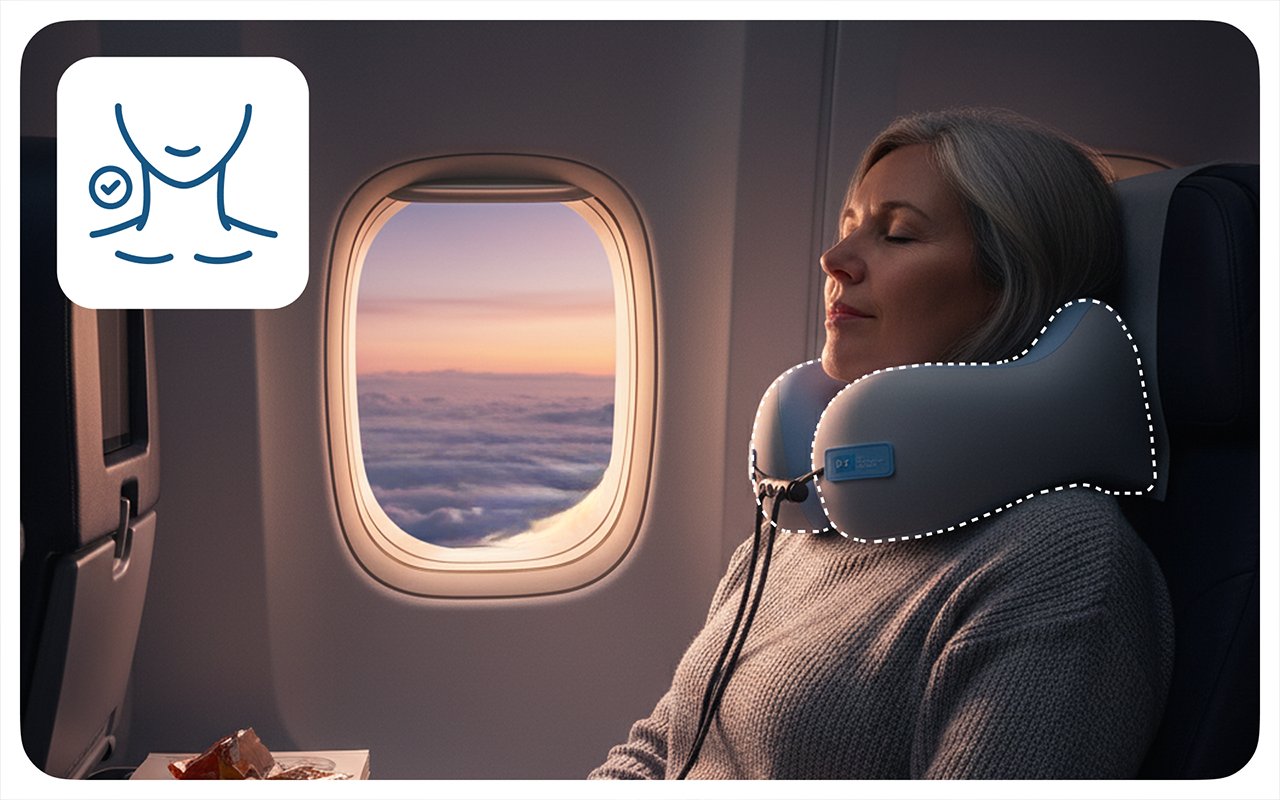 Smarts konturer omfavner dit ansigt og holder din nakke stabil. Ikke flere smerter efter at have sovet oprejst.