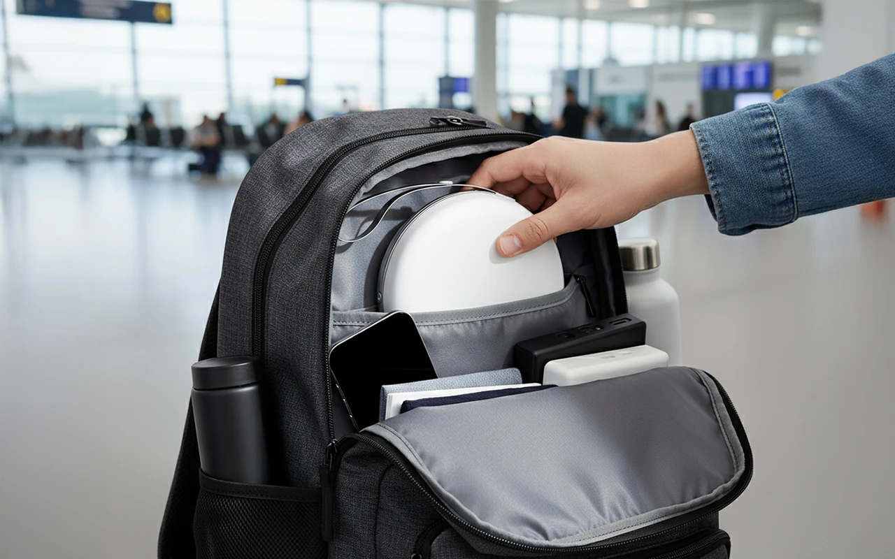 Passer i et lille etui og sparer værdifuld plads i tasken. Tag den med overalt, fra fly til bilture, uden besvær.
