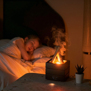 Min næse plejer altid at blive stoppet om natten, men siden jeg bruger flamme-luftfugteren, kan jeg trække vejret lettere og vågner frisk. Flamme-looket er så sejt.