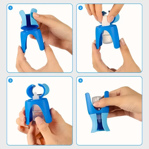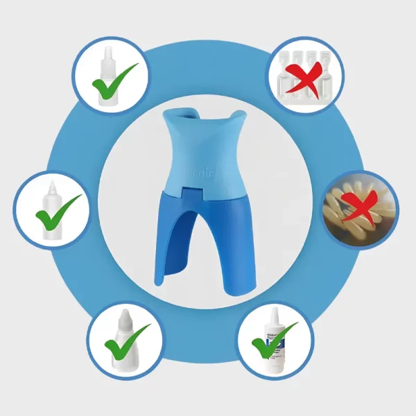 Ortorex drop dispenser gør øjenbehandlinger hurtige og rodfrie. Dens smarte design hjælper med at placere flasken præcis, hvor du har brug for det. Ikke mere blinken, besvær eller spildte dråber.