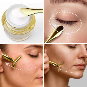 Blid massage hjælper med at lysne kedelig hud under øjnene. Hver anvendelse udglatter trætte træk for et friskere udseende.
