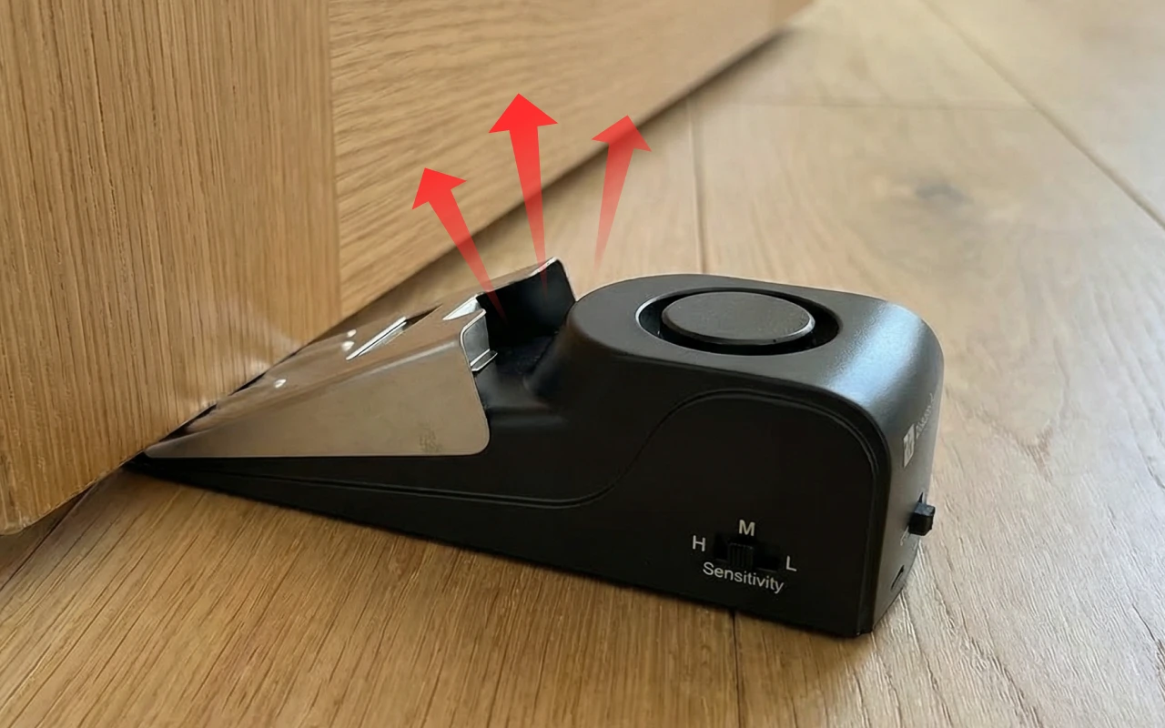 Hold dig sikker uanset hvor du er, derhjemme eller ude. Ortorex Door Stop Alarm passer let under enhver dør for ekstra sikkerhed. Det tager få sekunder at installere og giver dig ro i sindet med det samme. Den høje advarsel skræmmer uønskede gæster væk med det samme.