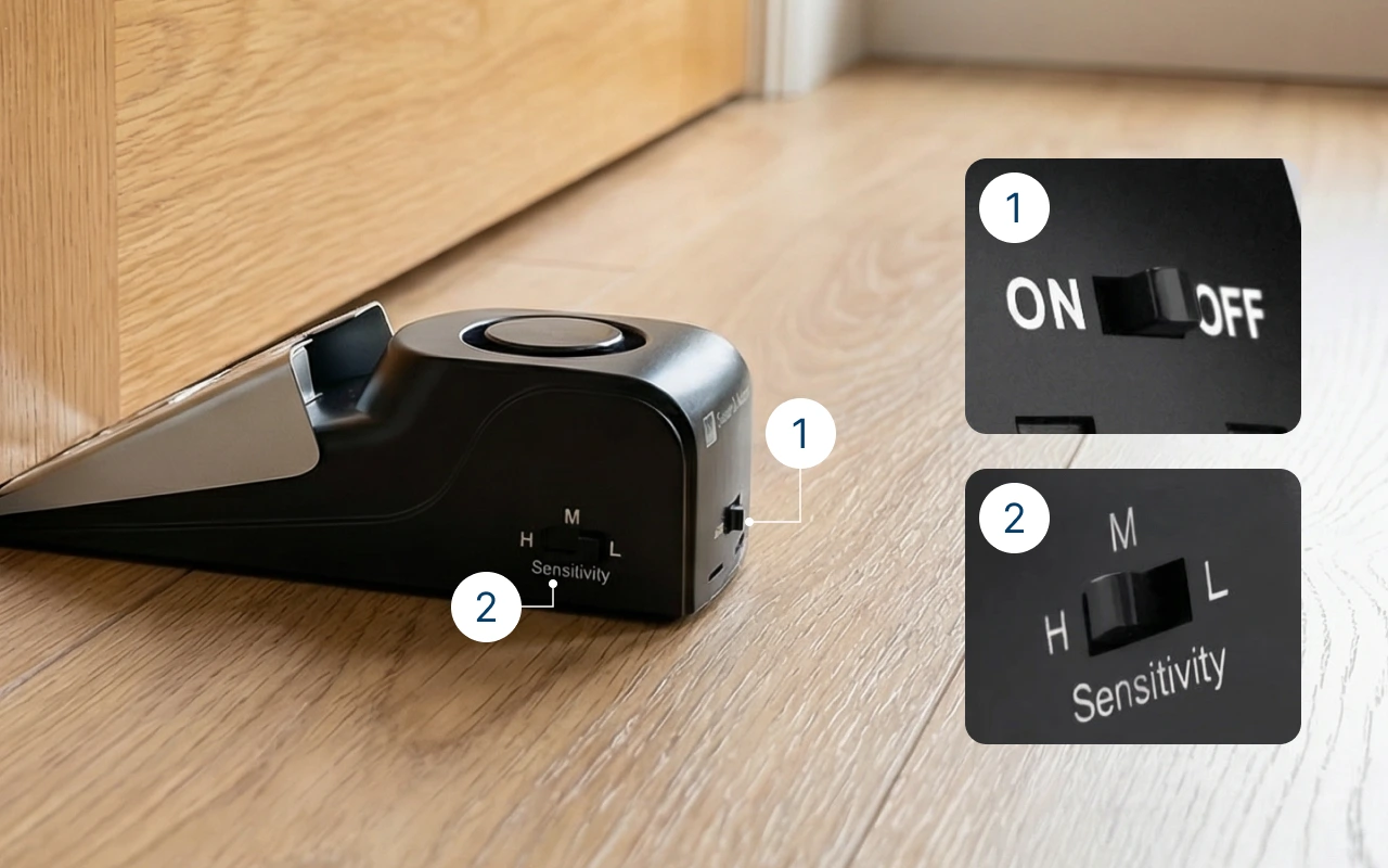Opsætning var super nem og hurtig. Jeg skubbede den bare ind under døren, tændte den, og følte mig straks meget mere sikker.