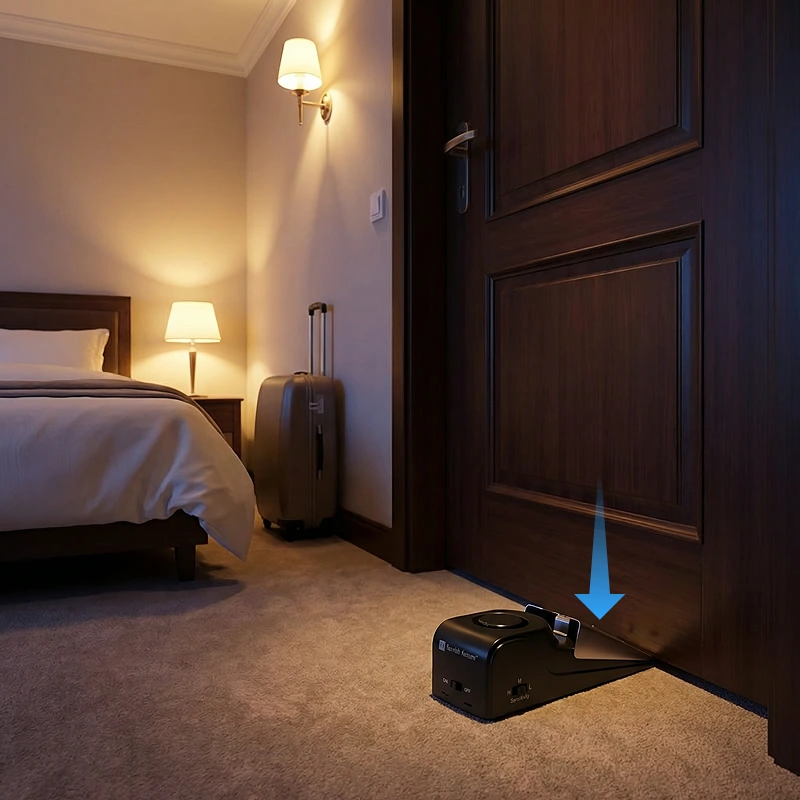 Hold dig sikker uanset hvor du er, derhjemme eller ude. Ortorex Door Stop Alarm passer let under enhver dør for ekstra sikkerhed. Det tager få sekunder at installere og giver dig ro i sindet med det samme. Den høje advarsel skræmmer uønskede gæster væk med det samme.