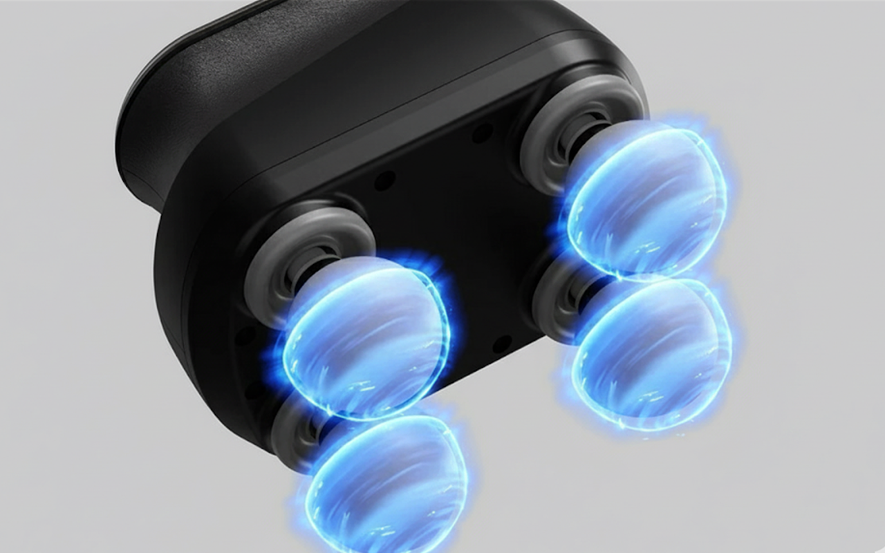 Fire hoveder arbejder sammen og leverer komfort over et stort område. Lindr din ryg, skuldre eller ben hurtigere end nogensinde.