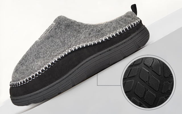 Den teksturerede sål hjælper med at forhindre, at du glider på glatte overflader. Gå trygt hen over fliser, træ eller ethvert indendørs område.