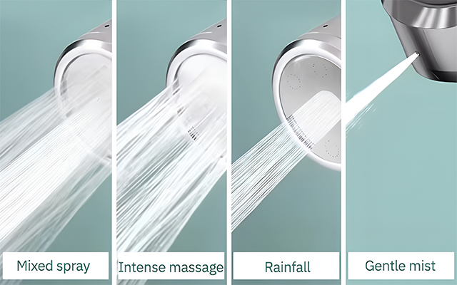 Du kan vælge mellem blid tåge, intens massage, regnvejr og blandet spray. Hver indstilling giver en unik fornemmelse, der sikrer afslapning og komfort.