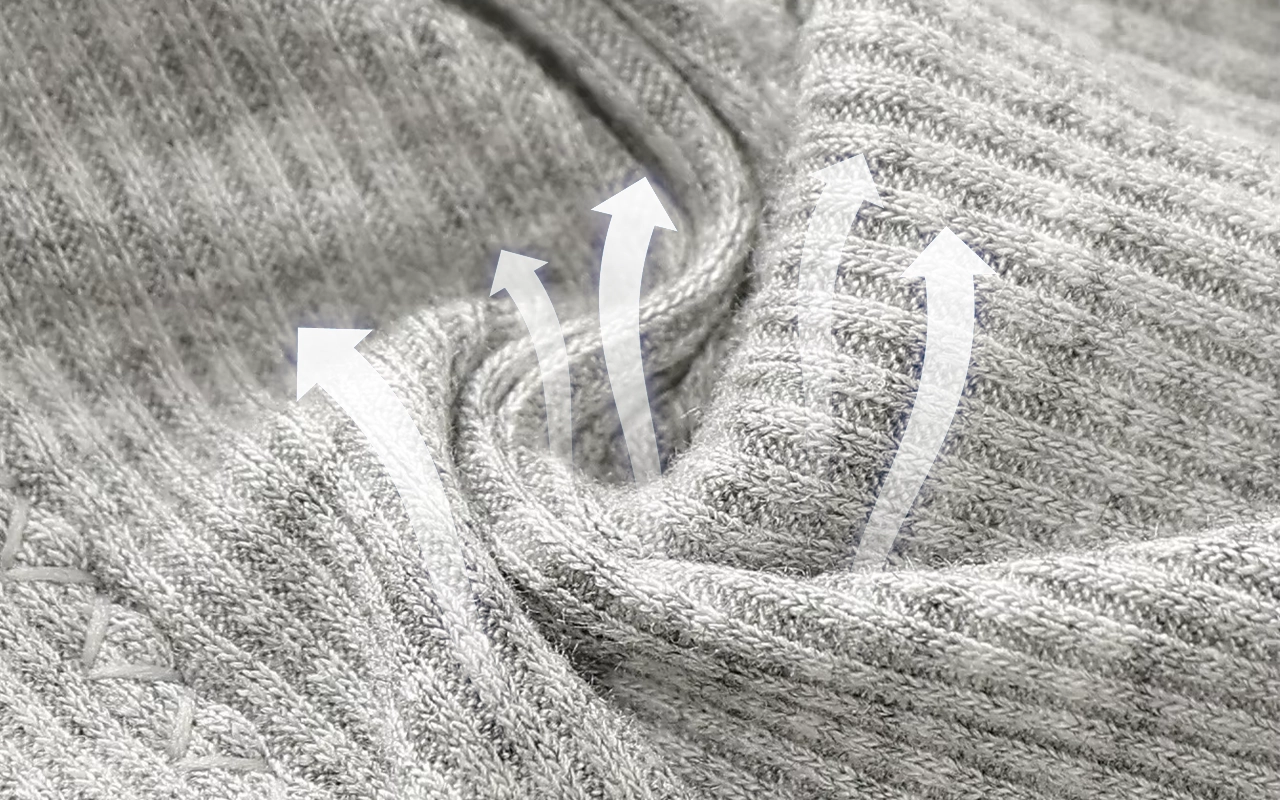 Luftigt design lader huden forblive kølig under arbejde eller hvile. Bløde fibre mindsker kløe, så komforten varer hele dagen.