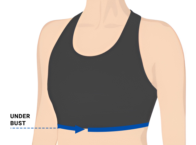 - 2. For at finde målet under busten, skal du vikle målebåndet om din brystkasse, direkte og jævnt under barmen.