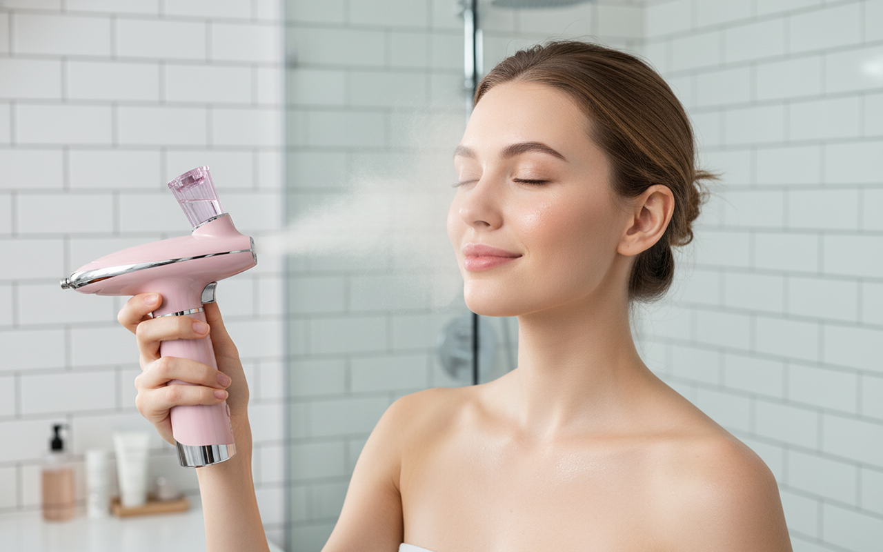 Nano-misten får mine kinder til at se glødende og sunde ud. Jeg har bemærket, at mine tørre pletter forsvandt, og min hud forbliver glat efter hver brug.