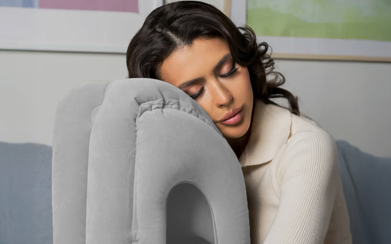 Ikke flere ømme nakker for mig. Let at puste op, så jeg kan tage en lur hvor som helst. Super let og passer i min rygsæk!