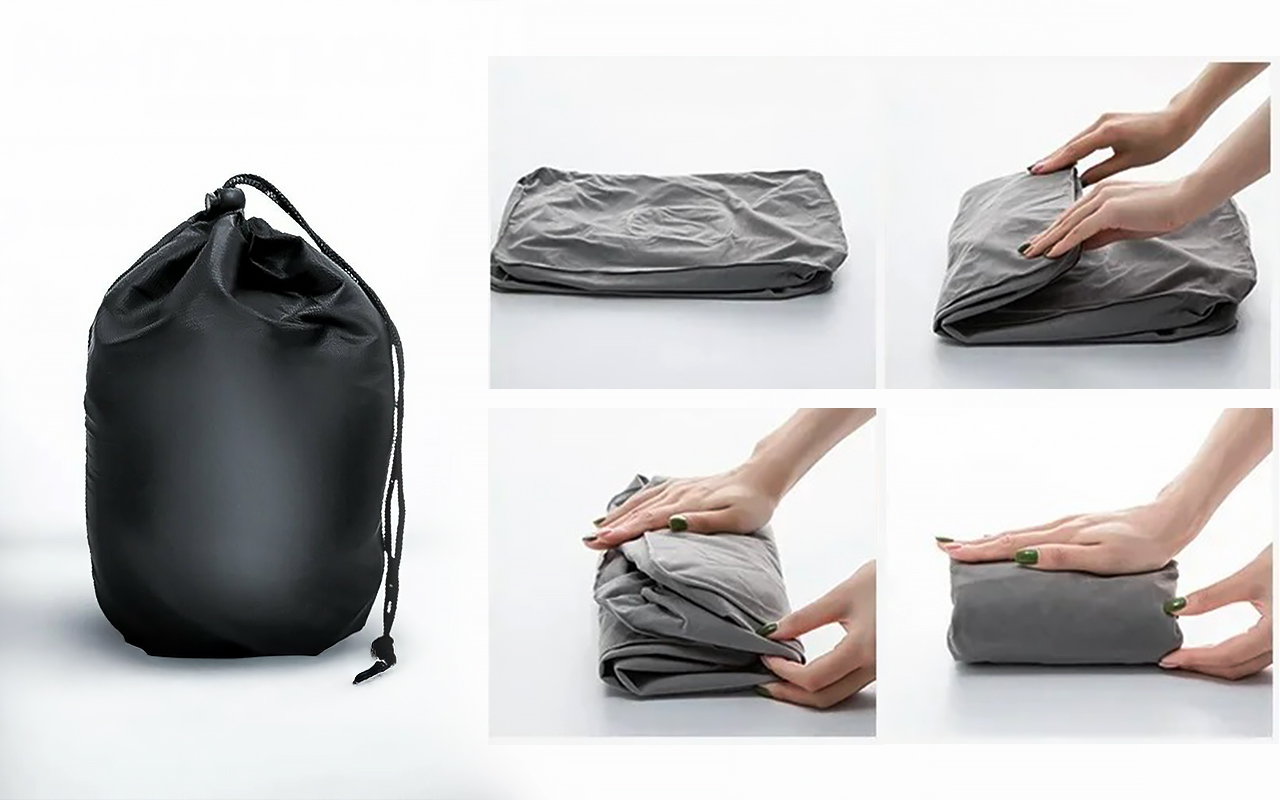 Kan nemt tømmes for luft og foldes sammen i den kompakte pose. Tag den med overalt uden ekstra vægt eller besvær.