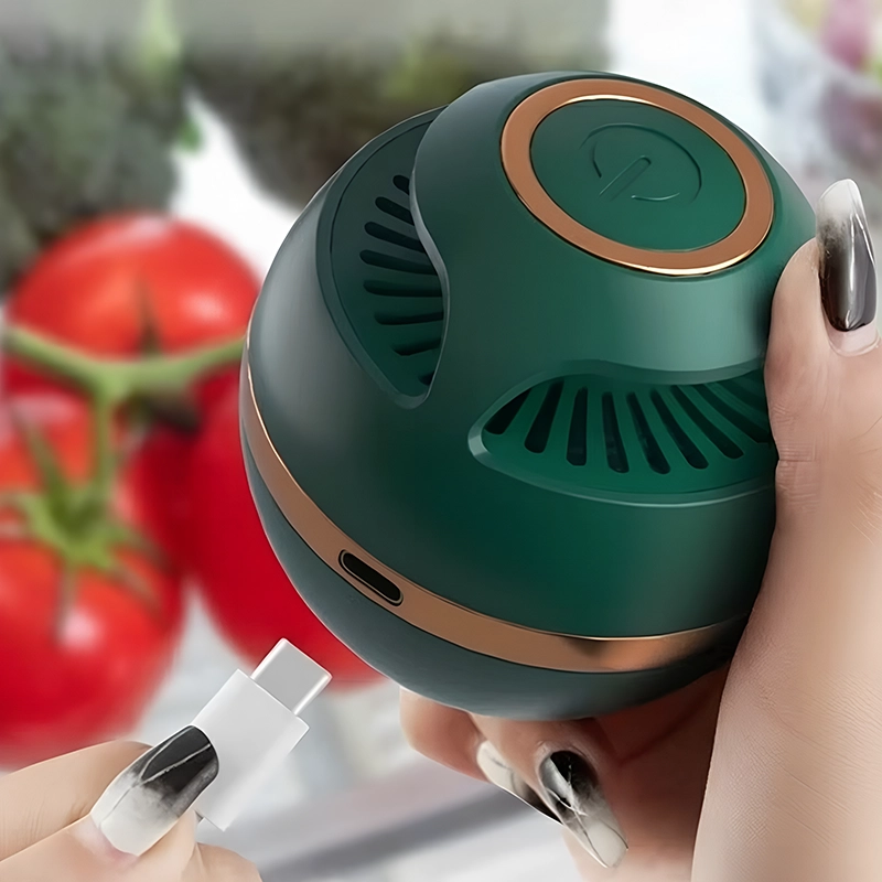 Denne lille renser holder mine snackskuffer og køleskab friske. Jeg bemærker ikke mærkelige madlugte længere. Mine jordbær holdt sig endda friske i over en uge!
