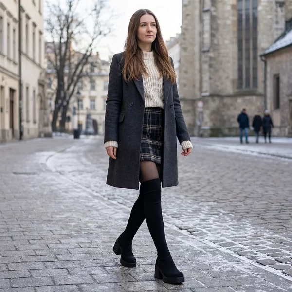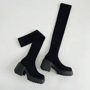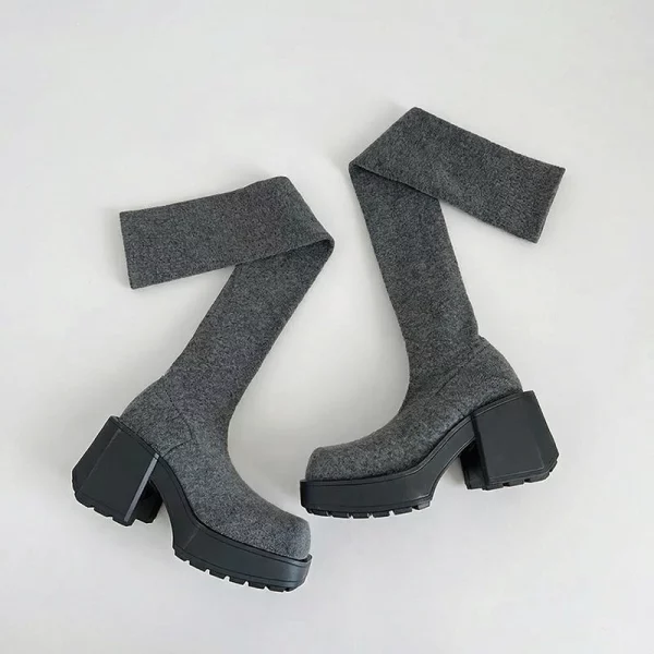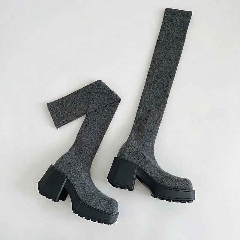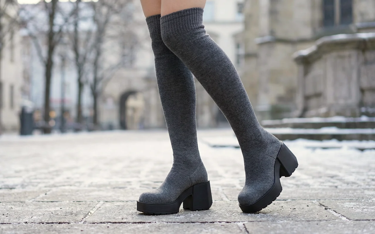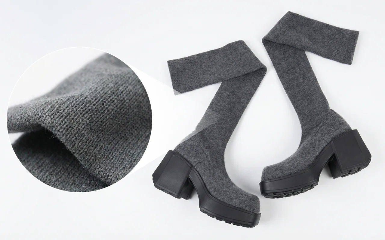 Tykt, strikket overmateriale holder ben og fødder varme udenfor. Kraftig platform beskytter mod våde fortove og koldt vejr.