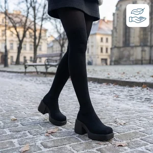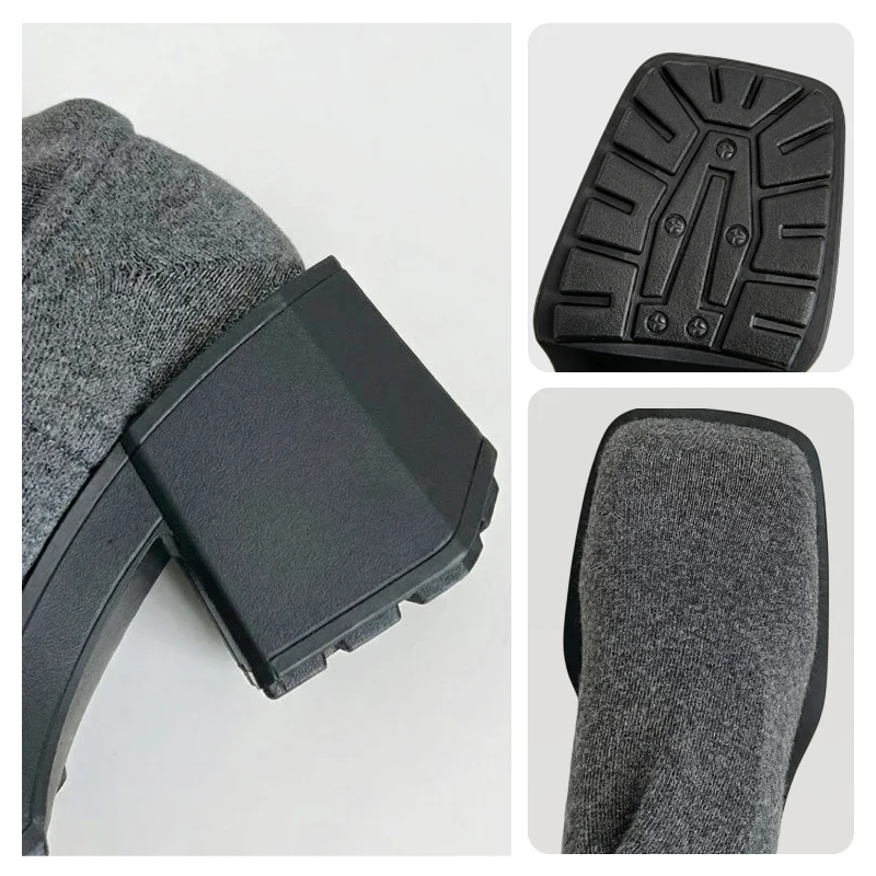 Tag Ortorex-støvler på og mærk øjeblikkelig komfort og støtte. Det hyggelige strikkede materiale omfavner dine ben blidt uden at gnave eller glide. Tykkere såler gør det lettere at gå og beskytter fødderne mod kolde gulve. Disse sko giver ekstra højde uden at gøre det svært at holde balancen.