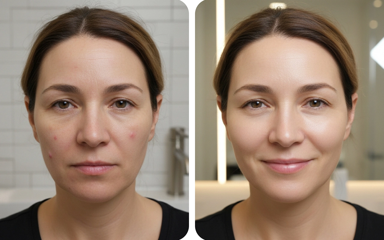 Ingen smerte eller stramhed, bare blød og beroligende. Jeg kan virkelig godt lide de justerbare lys til forskellige dage. Har allerede lagt mærke til, at nogle tidlige rynker forsvinder.