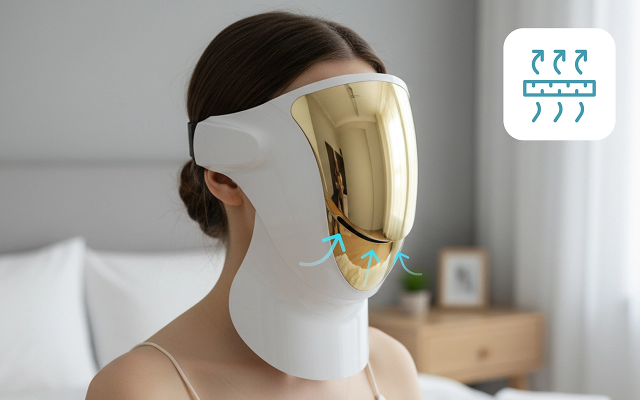 Transparent vindue og åndbart design muliggør naturlig vejrtrækning. Bløde silikonebånd gør hver behandling let og behagelig.