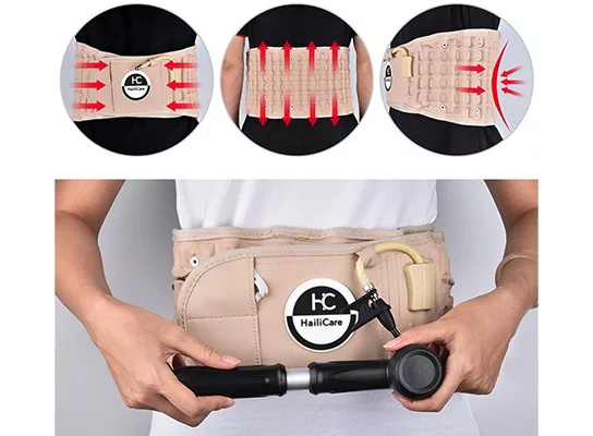 Vores dekompressionsbælte leveres med en håndpumpe, som giver mulighed for hurtig oppumpning og manuel trykstyring.