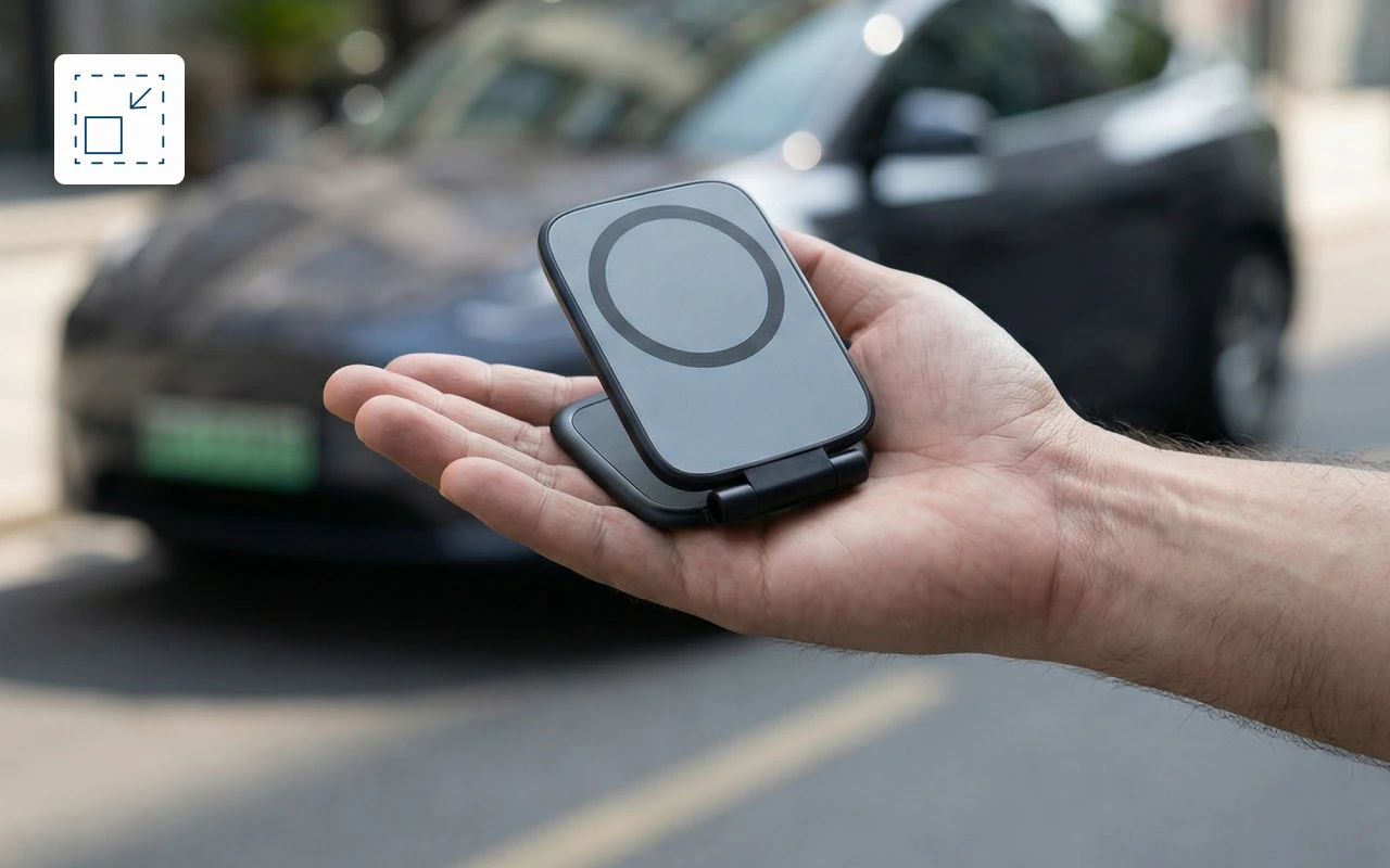 Super let og næsten ikke til at bemærke i min bil. Den glider nemt ned i min taske, når jeg rejser, hvilket er rigtig godt til forretningsrejser.