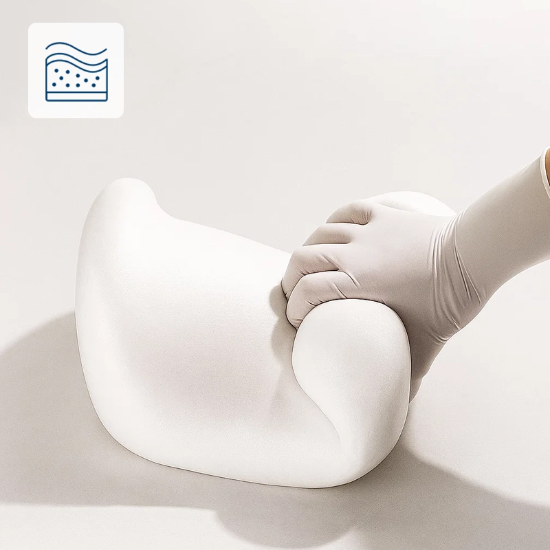 Memoryskummet former sig perfekt til min lænd. Nem at rengøre, og den er let, så jeg smider den bare i rygsækken til rejser.