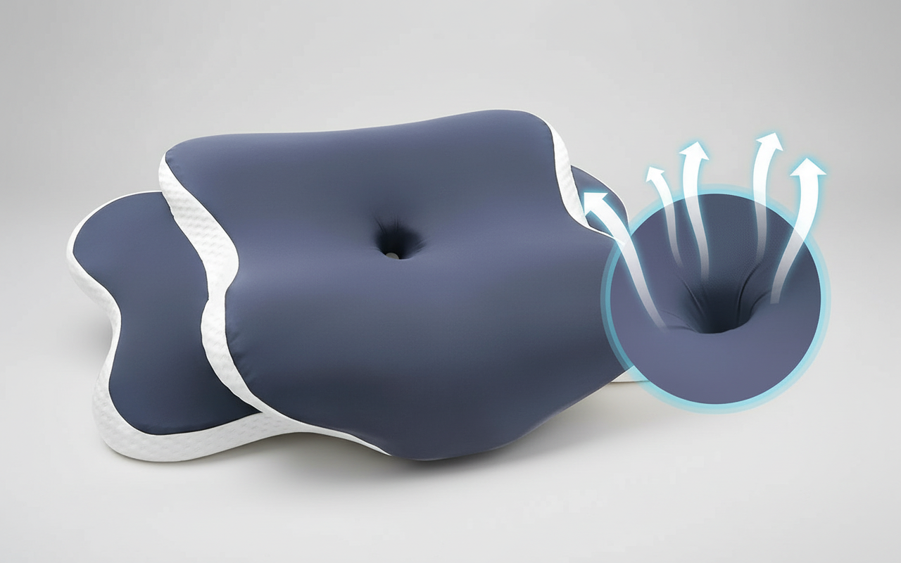 Luft strømmer nemt gennem puden for at mindske overophedning om natten. Friskhed og komfort opretholdes i timevis for uforstyrret hvile.