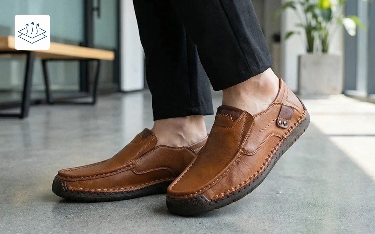 Ortorex loafers giver uovertruffen komfort gennem enhver travl dag. Letvægtsdesign hjælper fødderne med at holde sig friske og afslappede. Fleksible såler giver smidig bevægelse på byens gader eller indendørs. Slip-on-stil sparer dyrebare minutter, når du gør dig klar.