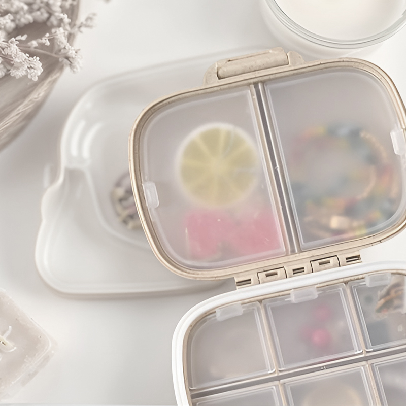 Virkelig hjælpsom når jeg rejser. Mine piller forbliver i deres egne rum, og den åbner sig aldrig af sig selv.