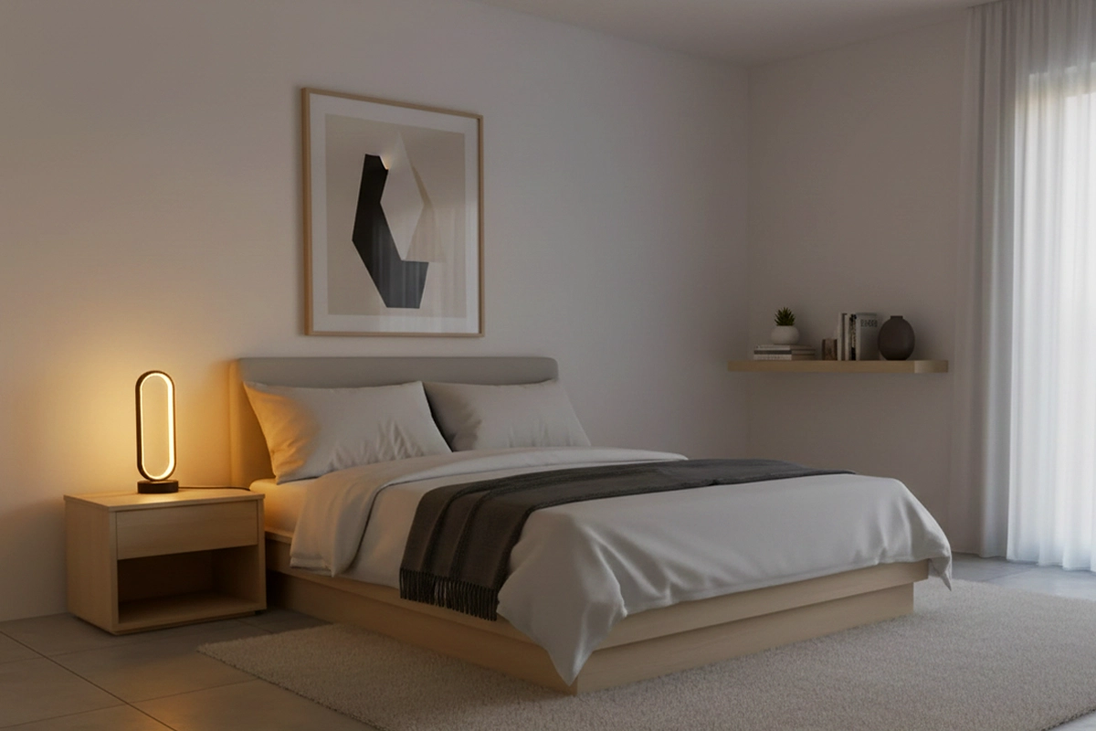 Det bløde skær er perfekt før sengetid. Den ovale form passer godt, og de mange lysmuligheder er super nyttige til at læse eller slappe af.