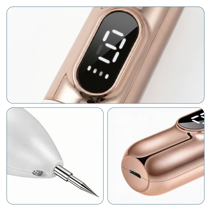 Intuitivt display og design gør hvert trin enkelt. Udskift nåle hurtigt og oplad nemt via USB.