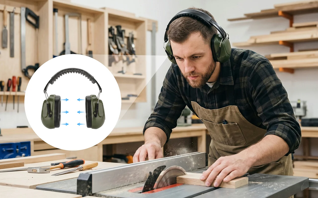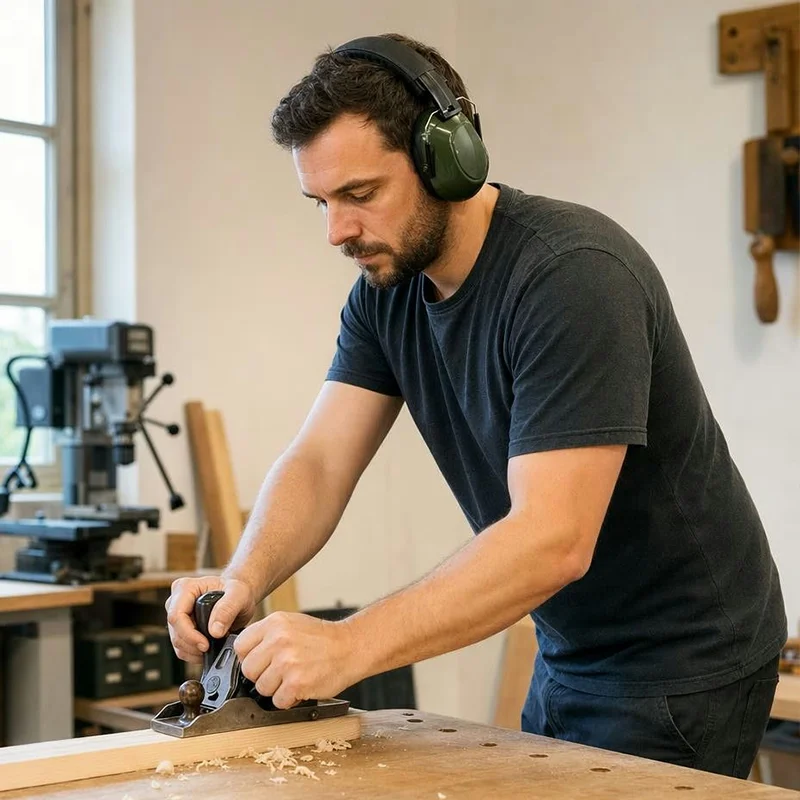 Jeg bruger dem i mit træværksted med elværktøj kørende. Polstringen sidder blødt, bøjlen trykker ikke, og jeg kan arbejde behageligt i flere timer.