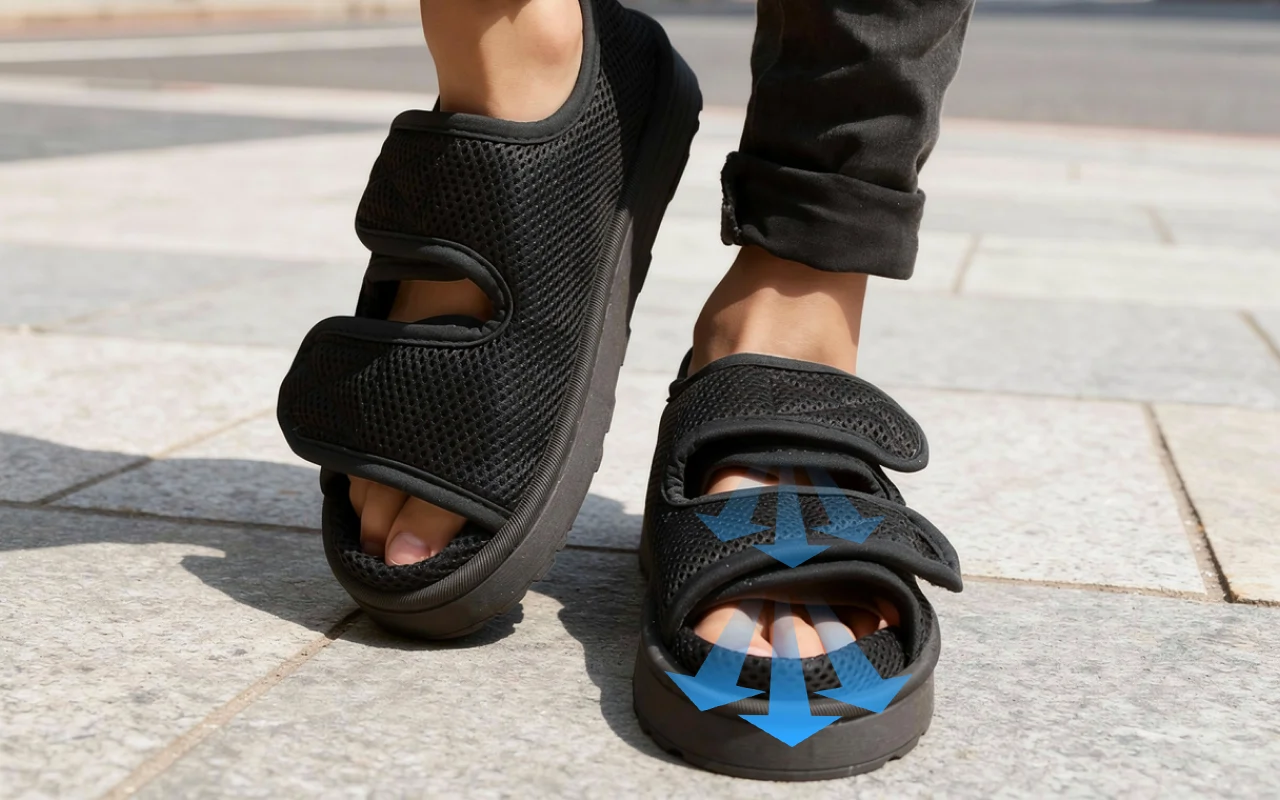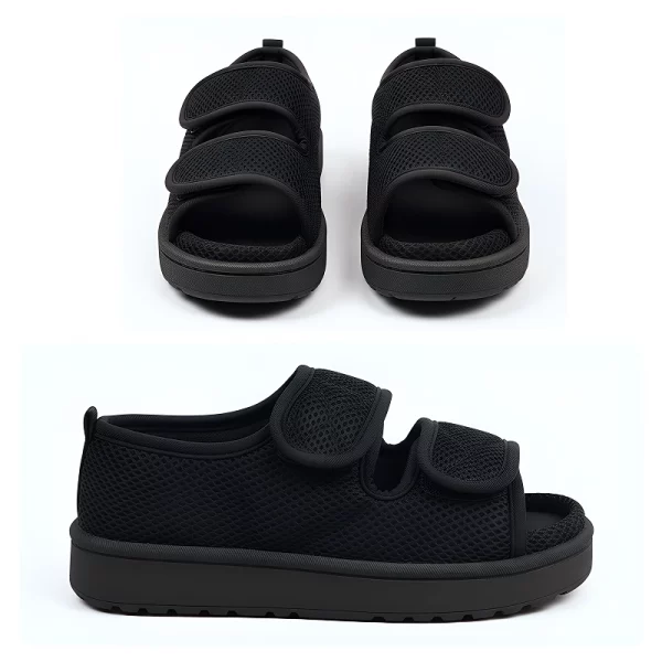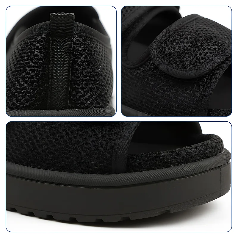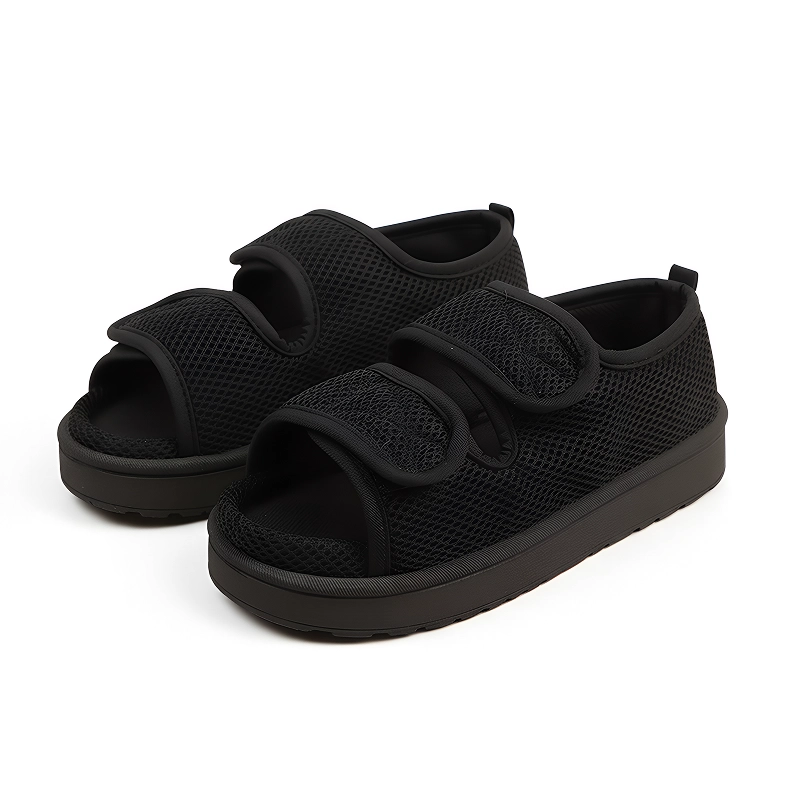 Købte dem her til min mor efter en operation. Hun elsker, at den brede åbning passer til hendes bandager, og den bløde sål aflaster hendes knæ og hofter.