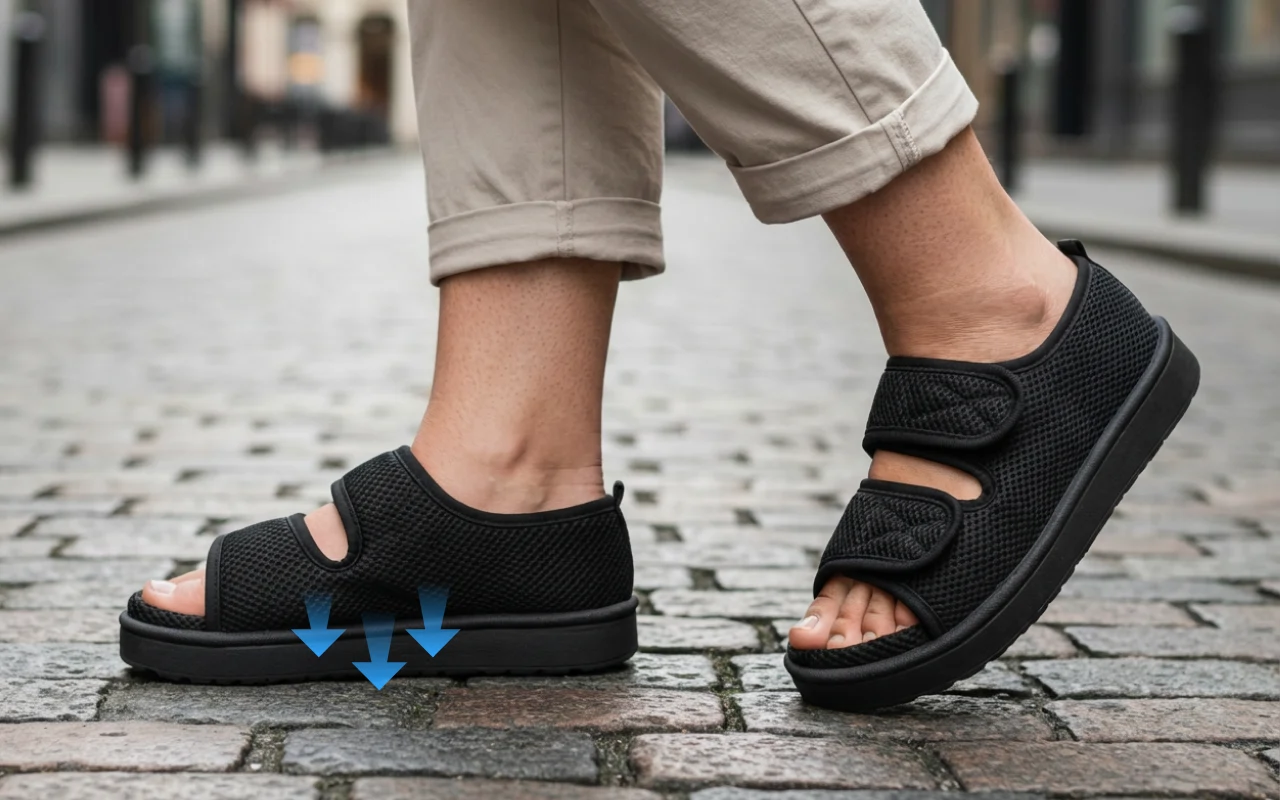 Ortorex diabetessko hjælper dig med at forblive aktiv uden belastning. Den brede pasform og bløde inderside beskytter sart hud mod tryk. En sikker strop holder fodtøjet på plads, mens den tillader naturlig bevægelse. Gennemtænkte materialer får den daglige gang til at føles lettere og tryggere.