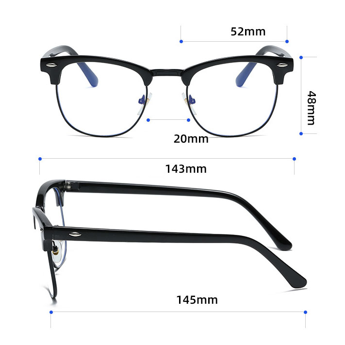 Brillernes udformning omfatter to sidestykker, der er forbundet til frontrammen med metalhængsler, der sikrer både solid og jævn åbning og lukning, og silikone-næsepuder, som gør brillerne mere stabile og behagelige at have på. Den er perfekt til daglig brug.