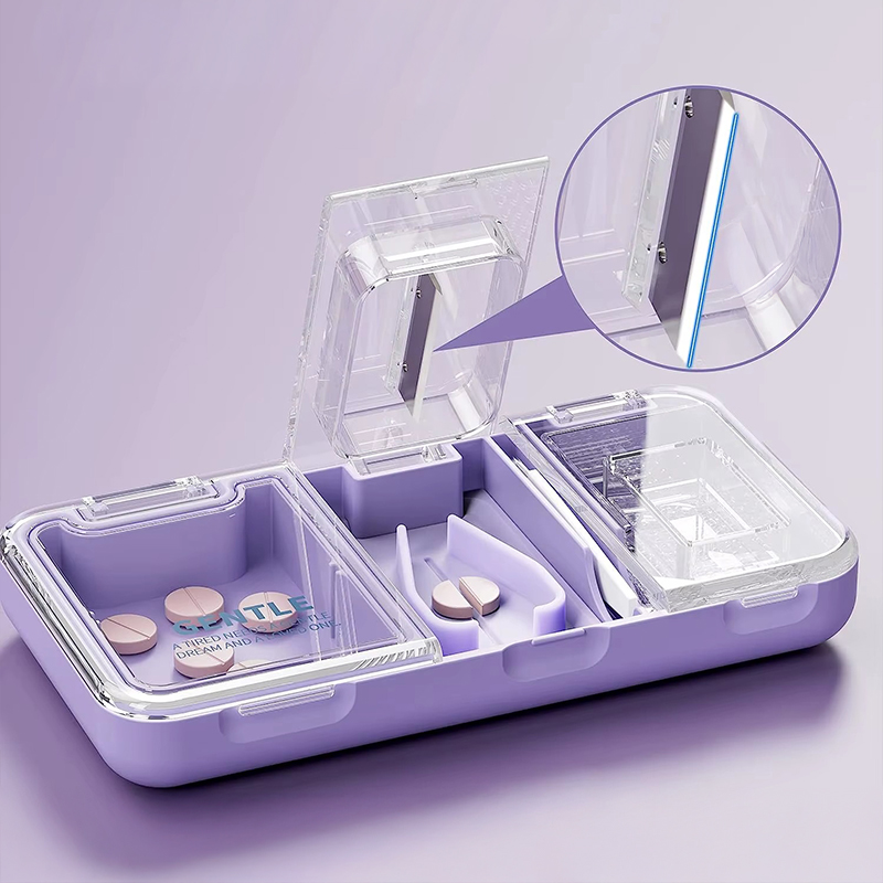 Tre nøglefunktioner er samlet i én enkel enhed. Opbevar, del og knus tabletter uden besvær eller rod.