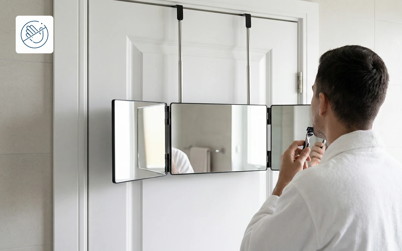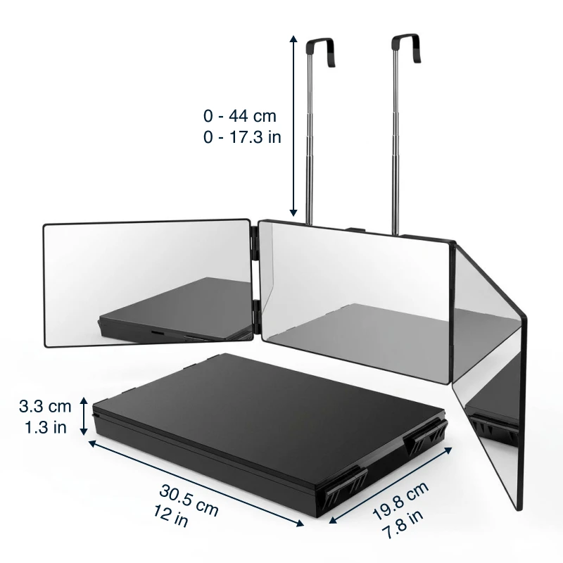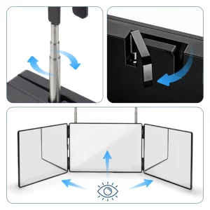 Ortorex trefoldsspejl løser hurtigt og nemt daglige plejeproblemer. Juster højden for fuld synlighed under styling eller barbering. Fold det fladt sammen, så det passer i tasker og skuffer til rejser. Få klare spejlbilleder til klipning, makeup eller hudpleje hver dag.