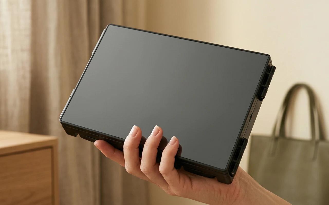 Det slanke foldedesign glider nemt ned i rygsække eller kufferter. Den lette konstruktion gør det nemt og bekvemt at tage med overalt.