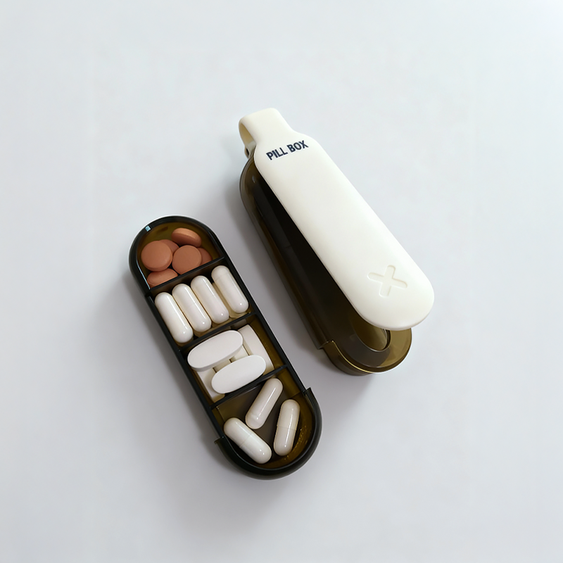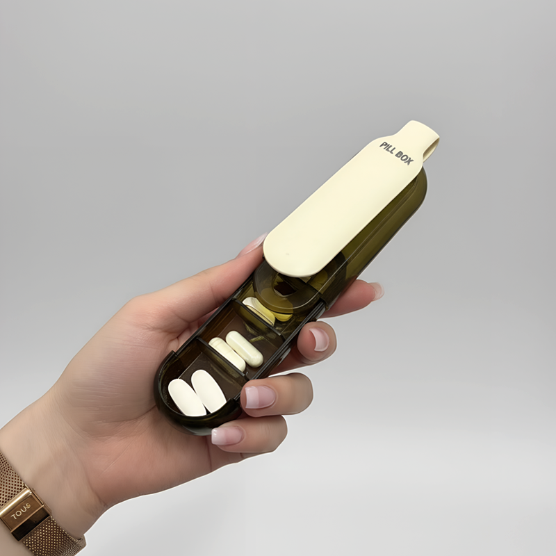Denne lille boks gør mine morgener så meget nemmere. Ikke mere bøvl med fastklemte piller, bare et hurtigt tryk og jeg er klar. Super praktisk og holder alting pænt og ordentligt.