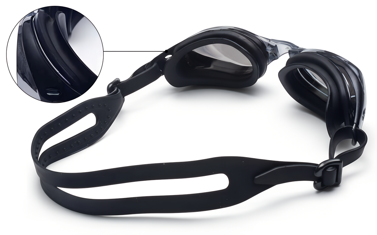 Blød silikone giver en skånsom forsegling og nem justering. Nyd hvert banesvøm uden tryk eller glid omkring øjnene.