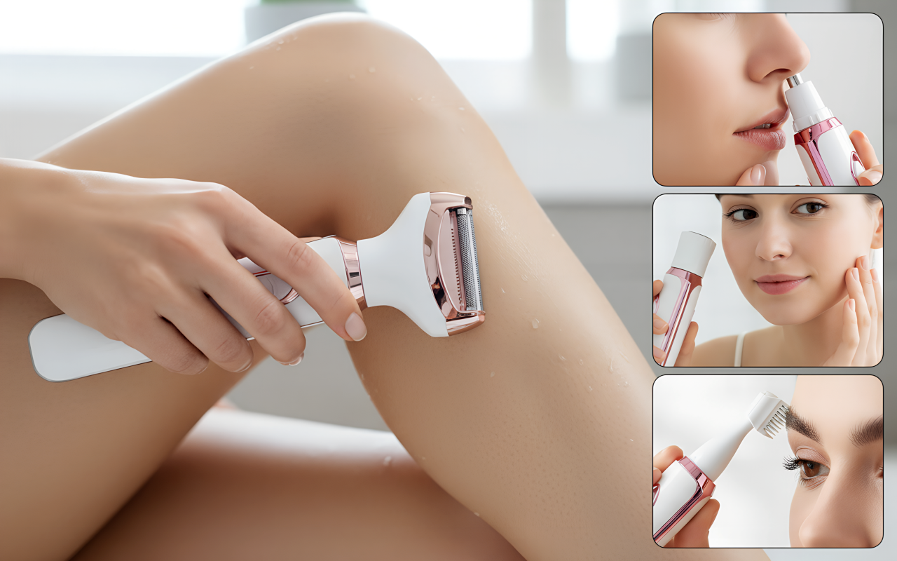 Skift mellem fire tilbehør til ethvert plejebehov. Ansigt, næse, ben og mere ser altid velplejet ud på få minutter.