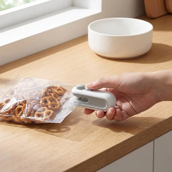 Jeg har forsegleren i min skuffe på arbejdet. Perfekt til at lukke halvbrugte kaffeposer og snacks, så de bevarer smagen hele ugen.