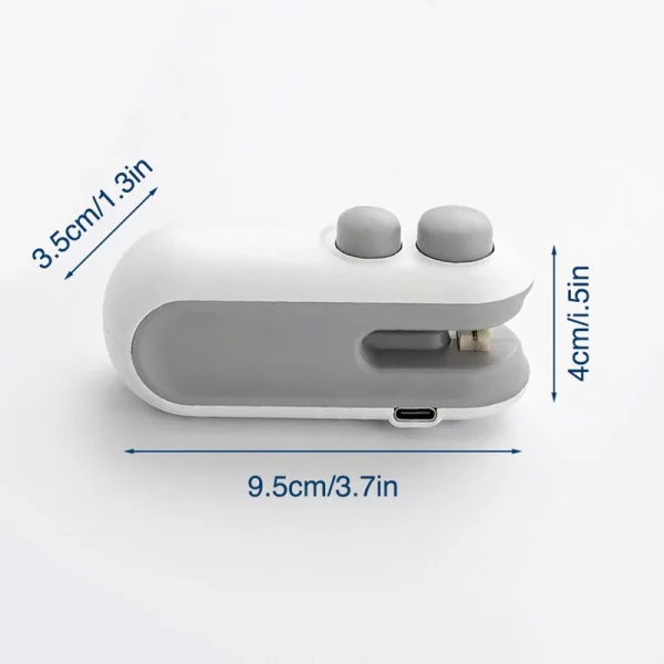 Købte denne håndholdte forsegler til campingture. Den er lille, lades med mit telefonkabel og holder skumfiduser og kiks tørre selv på fugtige aftener.