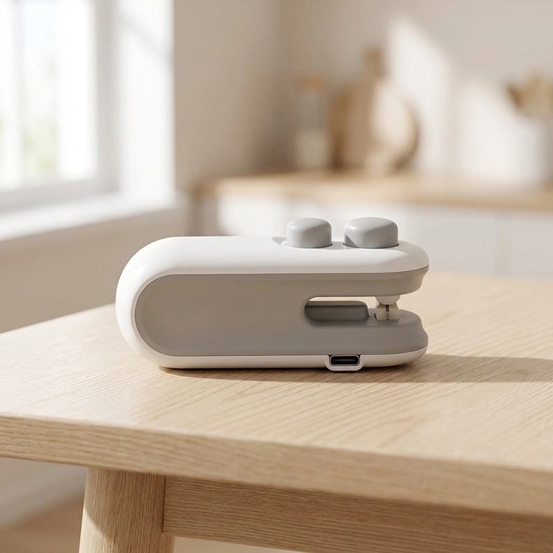 Var træt af klemmer, der altid forsvandt. Denne lille forsegler lukker hver pose tæt på få sekunder og holder faktisk mine småkager sprøde i flere dage.