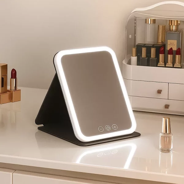 Du vil ikke overse et eneste område med dette makeup-spejl. Du kan ændre vinklen, så den passer til din højde eller siddeposition.