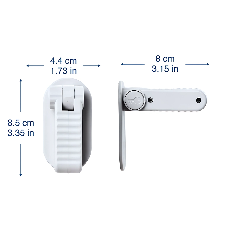 Denne lås er super praktisk! Super klæbende, helt sikker, og den kan fjernes uden rod. Giver mig stor tryghed med min lille dreng rundt omkring.