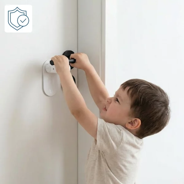 Den skjulte knap forhindrer nem oplåsning for små børn. Forældre kan slappe af, velvidende at de små ikke kan forlade rummet alene.