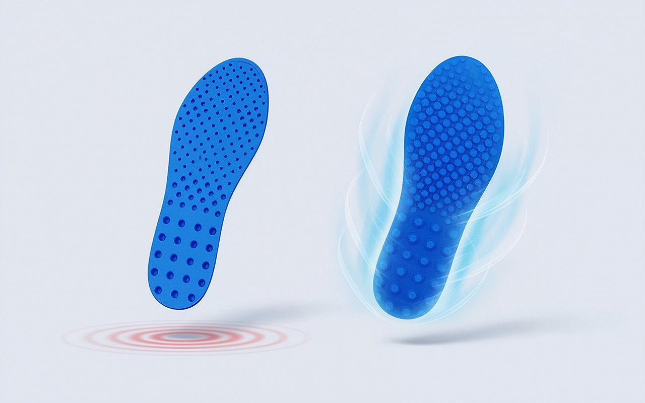 Hvert skridt føles blødere og lettere for led og hæle. Minimer stødpåvirkning under løb eller længere tids stående.