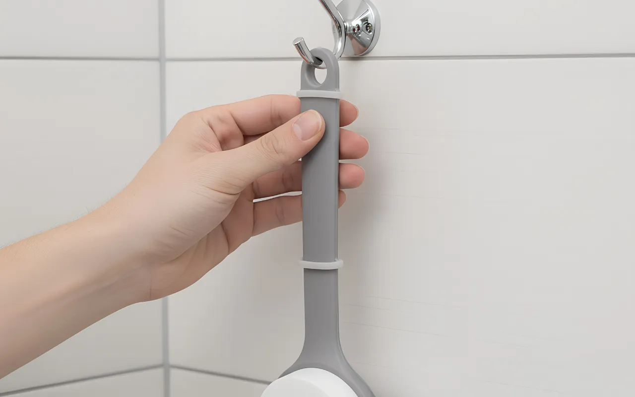 Håndtaget er ikke glat som min gamle børste. Jeg kan nemt nå de svære steder midt på ryggen.