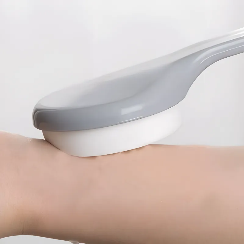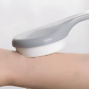 Håndtaget er ikke glat som min gamle børste. Jeg kan nemt nå de svære steder midt på ryggen.