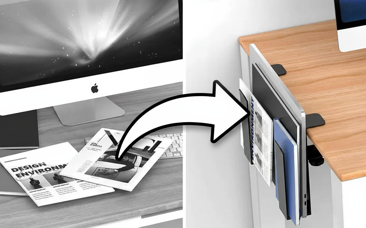 Reducer rod hurtigt ved at bruge en smart holder ved siden af dit skrivebord. Få mere plads til at arbejde, taste eller skrive uden forstyrrelser.