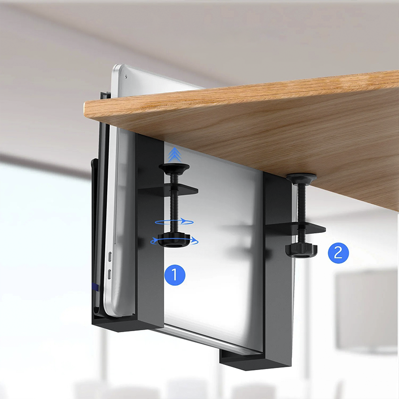 Rodede skriveborde gør det svært at holde fokus hver dag. Ortorex laptop-holderen giver hver enhed et sikkert sted. Stærkt metal holder alt sikkert og let at nå.